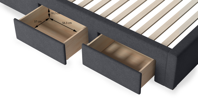 Engineered Wood King Size Drawer Storage Upholstered Bed in Grey Finish